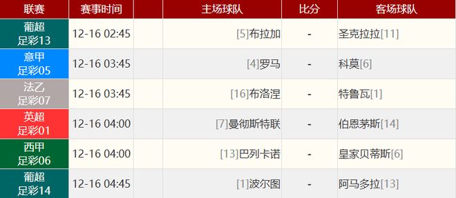 其他赛事比分: